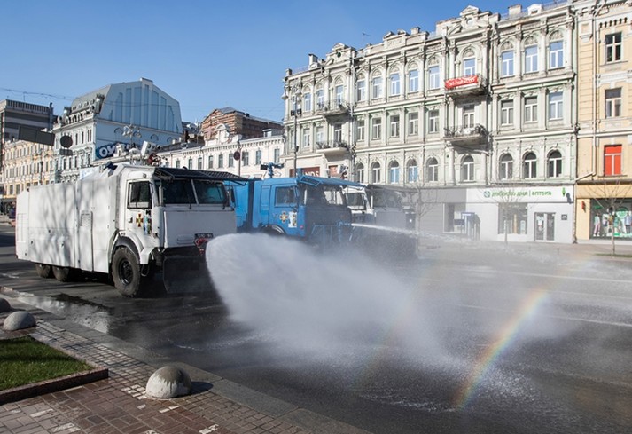 3 5 квітня і до закінчення карантинних заходів тричі на тиждень військовослужбовці Північного оперативно-територіального об’єднання Нацгвардії допомагатимуть дезінфікувати центральні вулиці Києва.