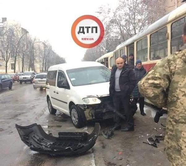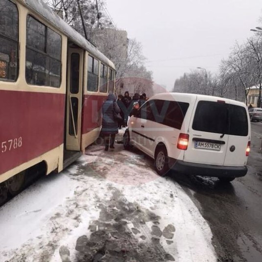 Сьогодні, 12 грудня, на вулиці Зоологічній у Києві сталася ДТП: автомобіль Volkswagen врізався у трамвай.
