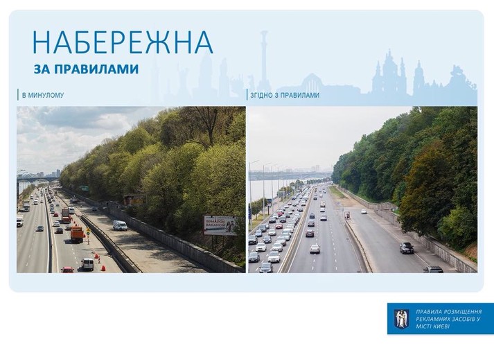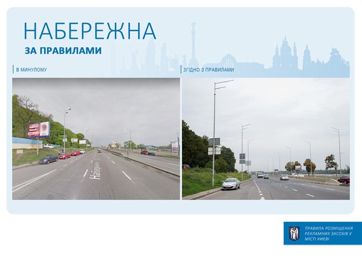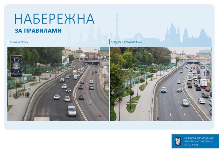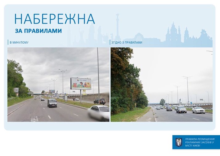 «320 конструкцій на 2,5 км.... Саме стільки рекламних засобів ще донедавна було на Набережному шосе», - зазначив він.