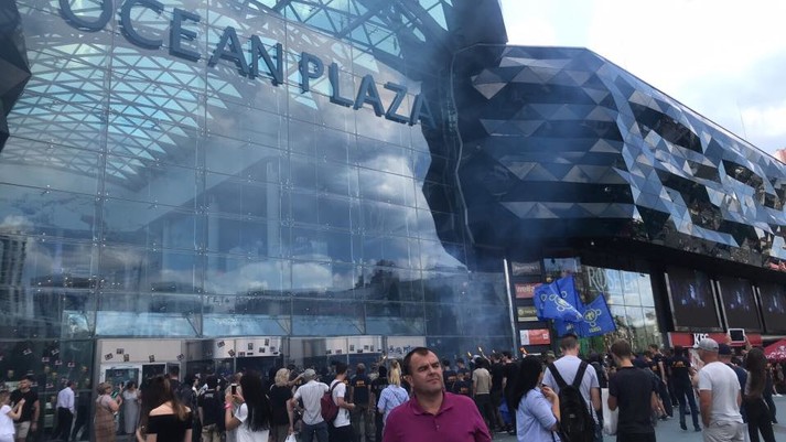 У Києві група осіб, членів організації «Сокіл», з фаєрами пікетували торговельний центр Ocean Plaza, у зв’язку з тим, що там працюють російські магазини та заклади харчування.