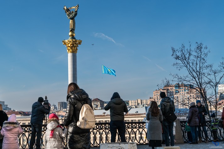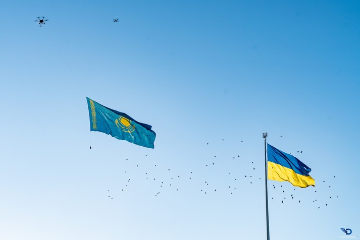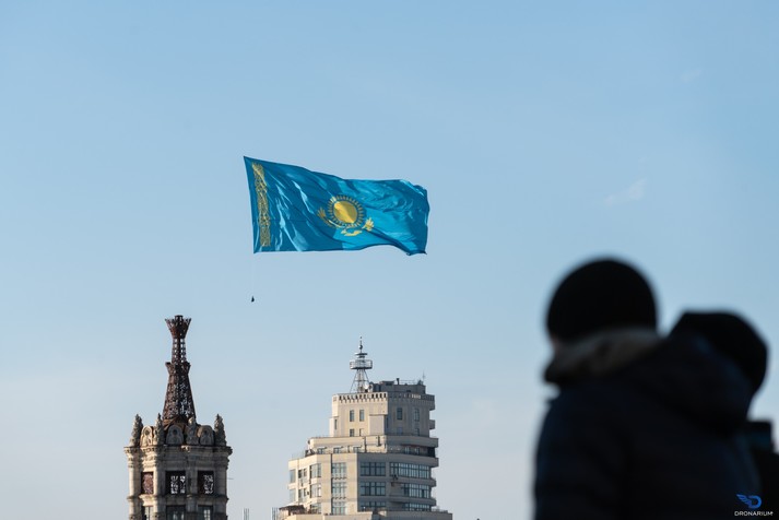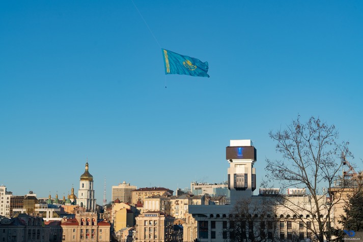 8 січня над центром Києва у небо підняли прапор Казахстану. Таким чином активісти вирішили привернули увагу громадськості до трагічних подій, які відбуваються у Казахстані та висловили підтримку народу цієї країни у важку хвилину. Акцію провела організація Dronarium.