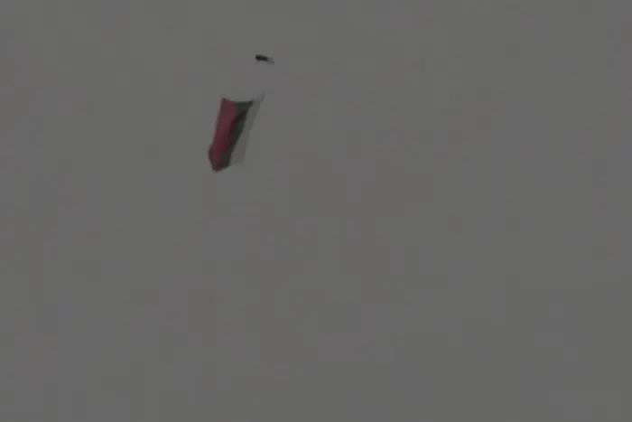 Безпілотник з причепленим прапором країни-агресорки РФ піднявся в небо і згодом впав.