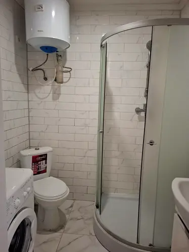 Суміжний санвузол обладнаний душовою кабіною, бойлером для безперебійного постачання гарячої води та пральною машиною.