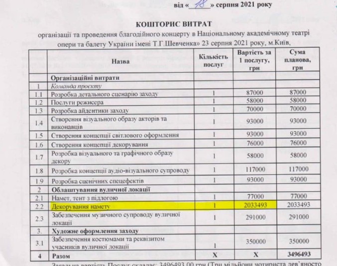 Загалом, благодійний концерт у Національному академічному театрі опери та балету України імені Шевченка обійшовся державі у майже 3,5 млн грн.