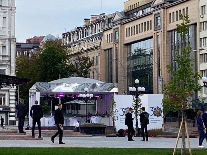 У мережі з'явилися світлини скандального намету, який коштував державі понад 2 млн грн. Він з'явився у столиці біля Національного академічного театру опери та балету сьогодні, 23 серпня.