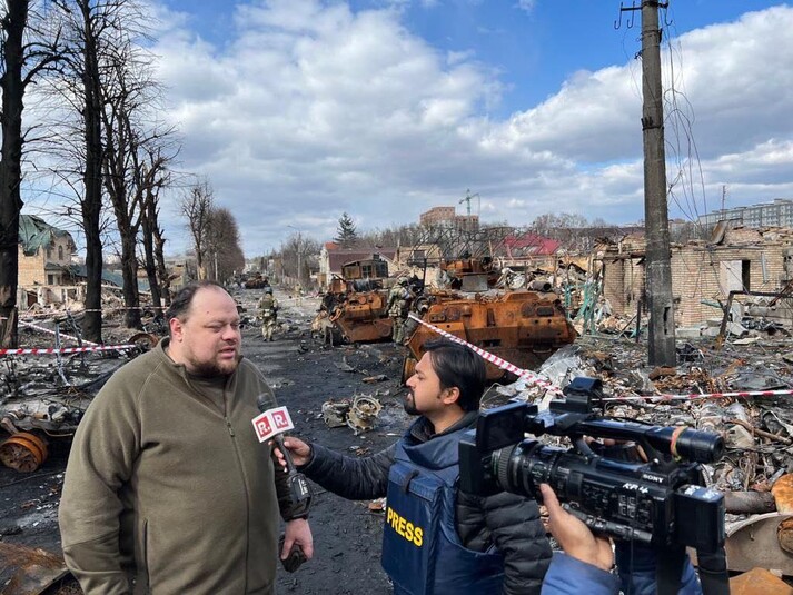Голова Верховна Рада України Руслан Стефанчук разом з представниками депутатських фракцій та головами Комітетів парламенту відвідали сьогодні, 4 квітня, звільнені території Київської області. Про це повідомляє пресслужба руху «Чесно».