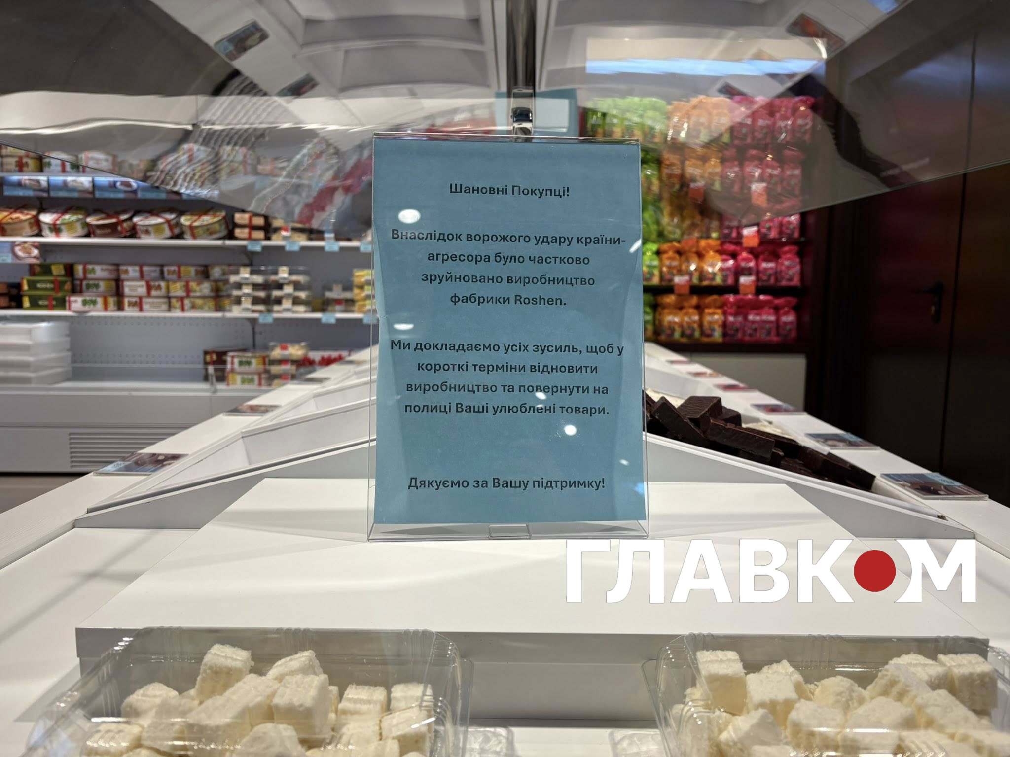 Адміністрація магазинів розмістила на місці відсутніх товарів звернення до покупців. У ньому пояснюється, що виробництво було частково зруйновано внаслідок ворожого удару країни-агресора. Компанія запевняє, що фахівці докладають максимум зусиль для швидкого відновлення робочих процесів та повернення улюблених товарів на полиці найближчим часом. При цьому інші категорії кондитерських виробів залишаються в наявності, а на частину продукції навіть діють акційні пропозиції.
