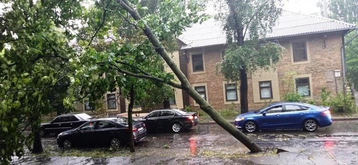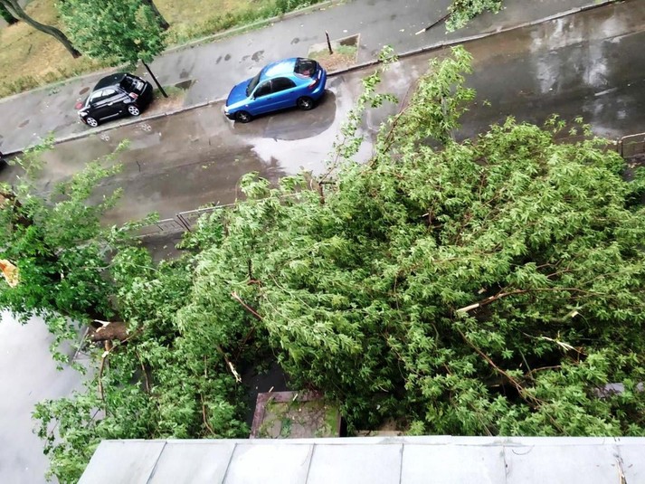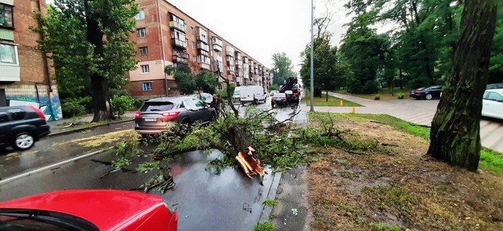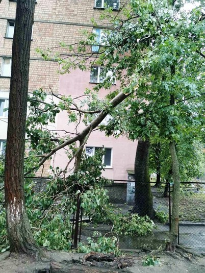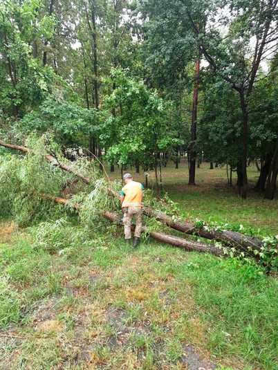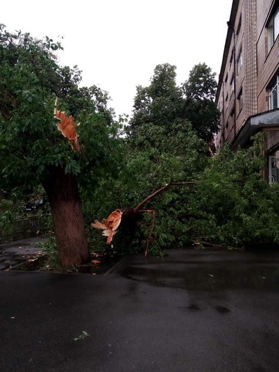 За минулі вихідні до аварійно-диспетчерської служби комунального об'єднання «Київзеленбуд» надійшло 35 звернень про пошкоджені дерева через негоду. За кілька годин негоди сьогодні, 19 липня, станом на 15:00 зеленбудівці прийняли 100 звернень про повалені та зламані дерева. Дзвінки продовжують надходити. Про це повідомляє пресслужба «Київзеленбуду».
