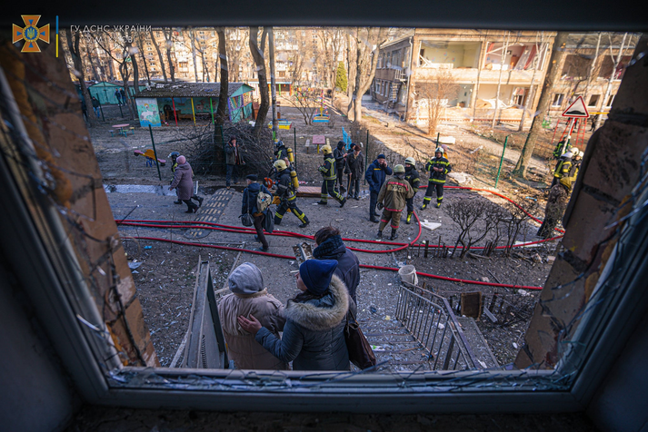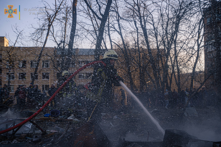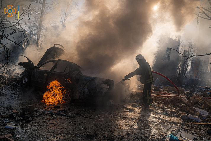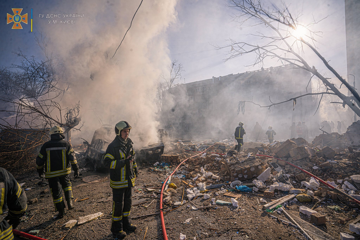 Сьогодні вранці житловий квартал у Подільському районі Києва був обстріляний російськими окупантами, з'явилися фото наслідків. Про це повідомляє ДСНС України.