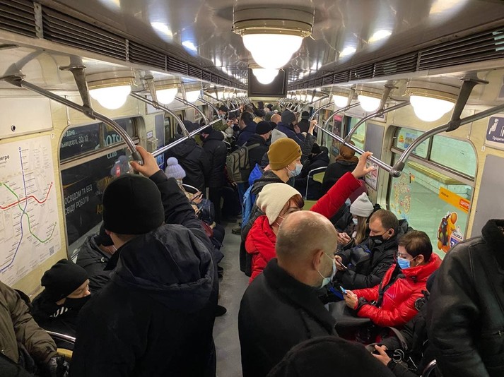 Понеділок, 11 січня, став першим робочим днем зимового карантину після новорічно-різдвяних вихідних. У зв’язку з цим у столичному метро збільшилась кількість пасажирів і на деяких станцій спостерігається скупчення людей.