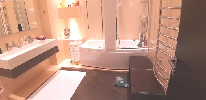 «В ремонті використані якісні матеріали.Підлога – паркетна дубова дошка. Електричний підігрів плитки. Дорогі меблі та фурнітура. Вся побутова техніка. Мармурова кухонна поверхня. Відеоспостереження. Сигналізація. Вхід на поверх з індивідуальним доступом», описані переваги квартири.