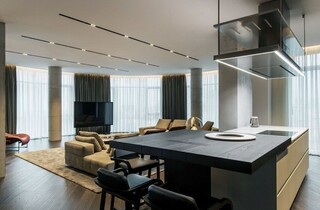 Всі кімнати – студійна вітальня з зоною їдальні та кухні, 3 спальні з ванними та гардеробними кімнатами обладнані брендовими меблями та побутовою технікою.