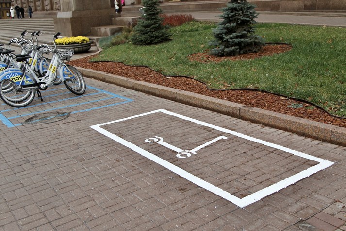 Заступник голови КМДА додав, що в результаті така розмітка має бути у всьому Києві на чітко затверджених паркомісцях. І лише звідти самокати мають стартувати.