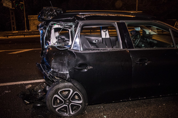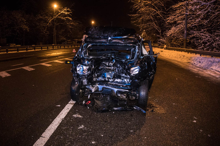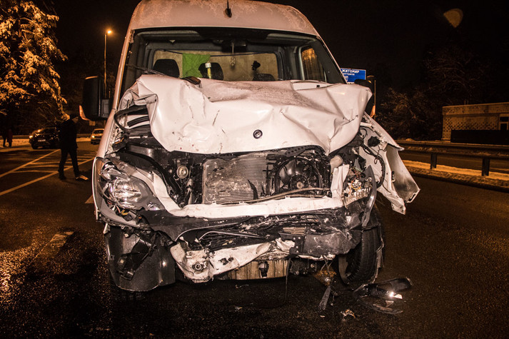 У понеділок, 17 грудня, на в'їзді до Києва на Житомирській трасі сталася ДТП за участю легкового автомобіля Citroen Aircross і Mercedes Sprinter: мікроавтобус на великій швидкості влетів у легковик, що стояв на світлофорі.