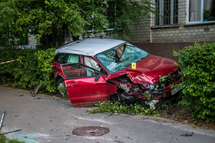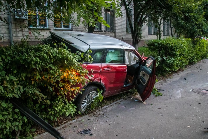 У неділю, 21 липня, на проспекті Академіка Вернадського в Києві сталася ДТП: Range Rover зніс стовп і «припаркувався» в найближчих кущах.