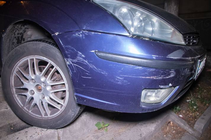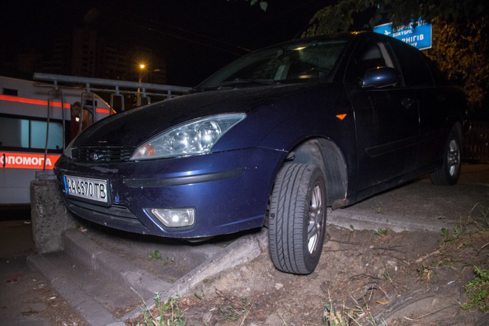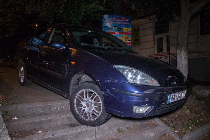 У дворах житлового будинку навпроти ТРЦ «Мармелад» водій Ford Focus намагався виїхати на проїжджу частину. Однак, не впоравшись з керуванням, він зачепив два припаркованих авто - Daewoo і Nissan. Побачивши те, що трапилося, на вулицю вийшли очевидці - жителі найближчого будинку. Вони намагалися затримати порушника, але той хотів втекти з місця події. Водієві Ford втекти не вдалося, він їхав по тротуару і не помітив сходинки. Машина повисла на них і не змогла рухатися далі.