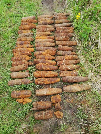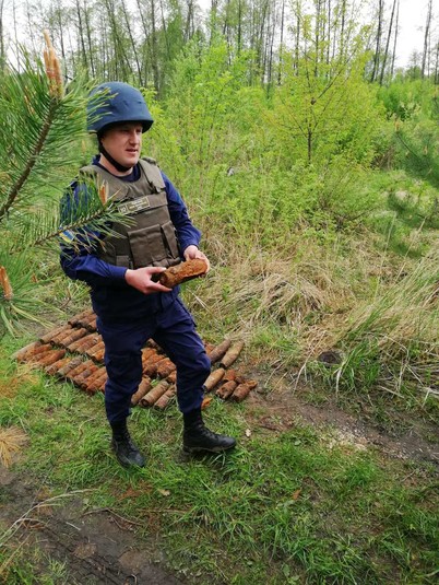 Небезпечна знахідка: у лісі на Київщині виявлено 35 снарядів (фото)