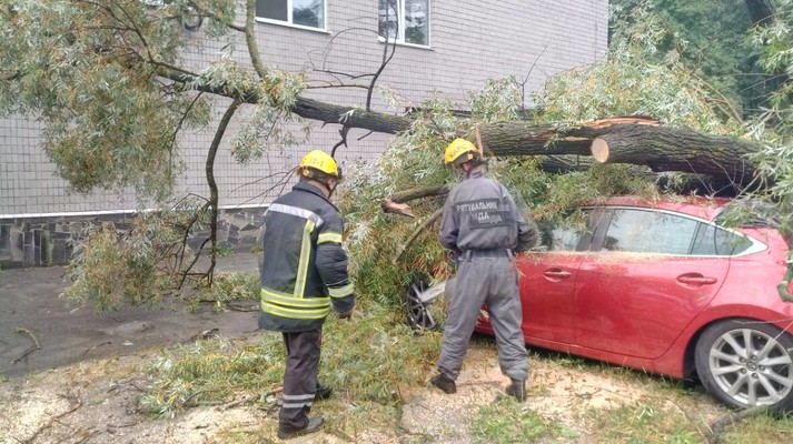 Рятувальники «Київської служби порятунку» спільно з рятувальниками Головного управління ДСНС у Києві здійснили більше 50 виїздів на ліквідацію наслідків негоди, а саме: на прибирання повалених вітром дерев.