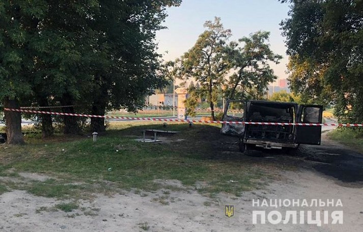 У Києві невідомі у чорній формі підпалили мікроавтобус з людьми (фото)