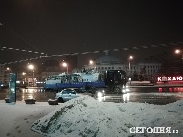 У четвер, 15 березня, рано вранці кияни стали свідками незвичайного транспортування у центрі міста корпусу літака.