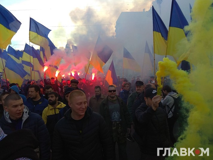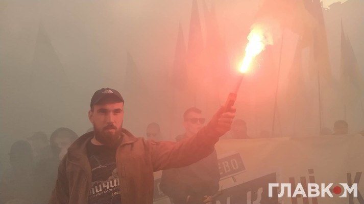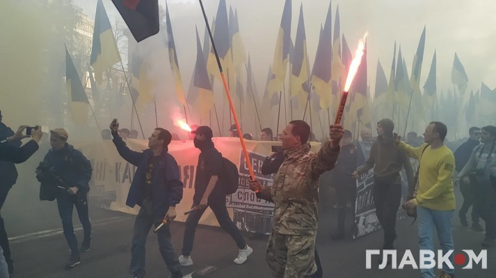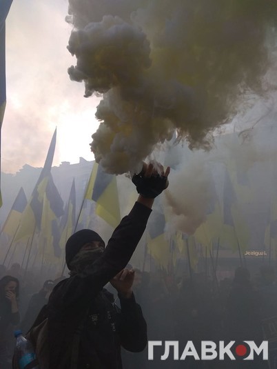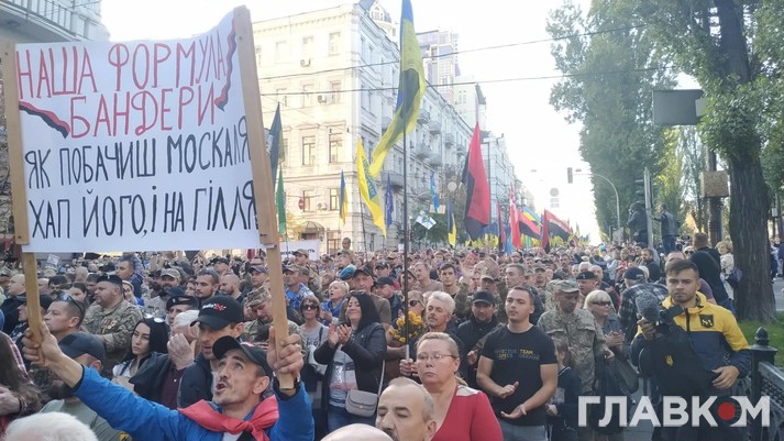 Як повідомляє кореспондент Главкома, у заході беруть участь кілька тисяч активістів. На мітингу можна побачити державні прапори та червоно-чорні стяги.