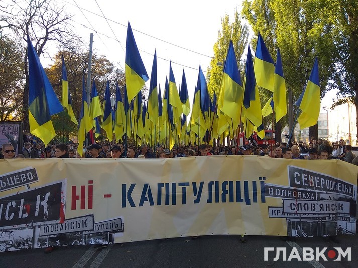 У понеділок, 14 жовтня, ветерани АТО проводять у Києві марш «Ні капітуляції!» проти реалізації «формули Штайнмаєра».