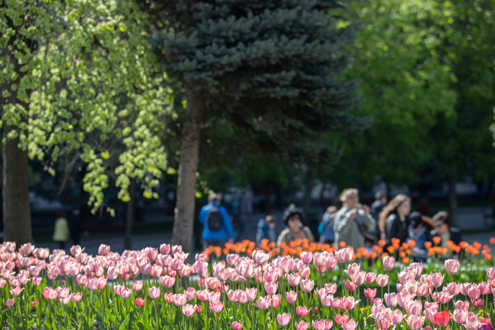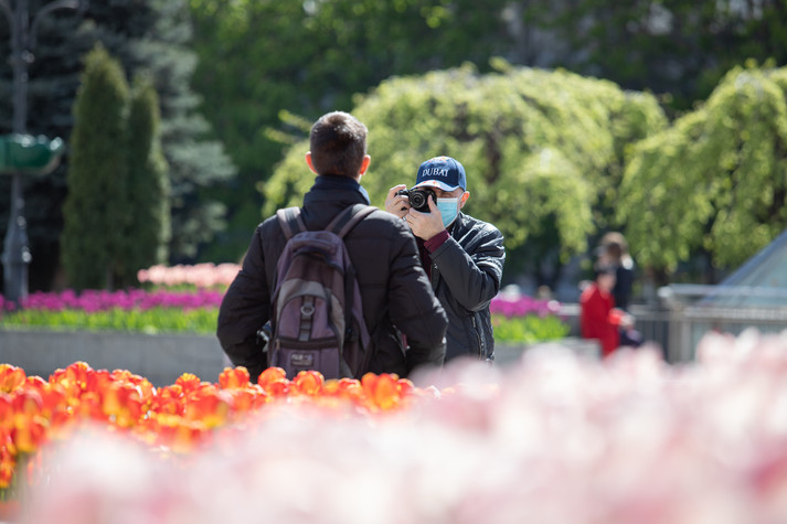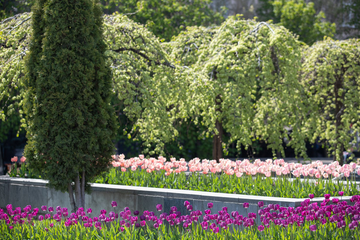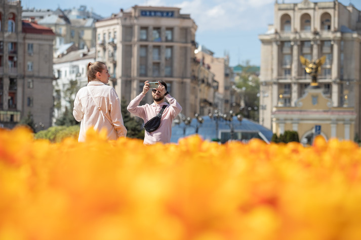 100 тисяч тюльпанів розквітли в центрі Києва та радують мешканців та гостей столиці.
