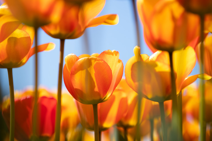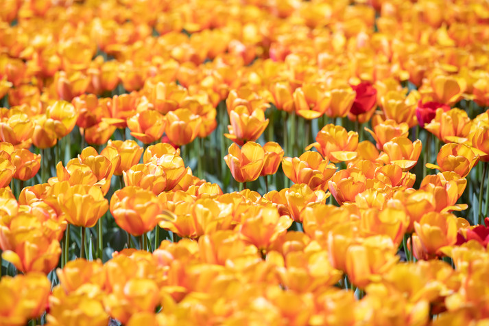 Сорти були підібрані за кольорами – жовті, жовтогарячі, червоні (Banjaluka, Blushing Apeldoorn, Jan Seignette, Orange Lion, Oranje van Eijk, Oranje Breeze), рожеві (Salmon van Eijk) та фіолетові (Negrita Purple). Залежно від сорту тюльпани мають різну висоту і створюють об’ємну картину.