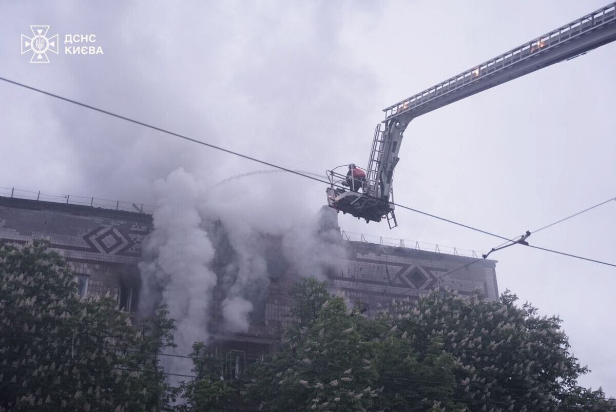 У Святошинському районі виникли пожежі в кількох квартирах на верхніх поверхах житлового будинку. У Дніпровському – руйнування на верхньому поверсі будинку.