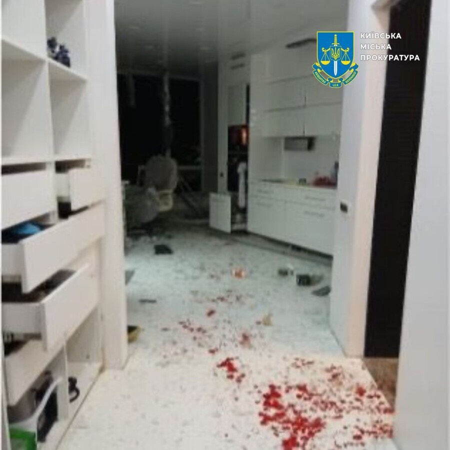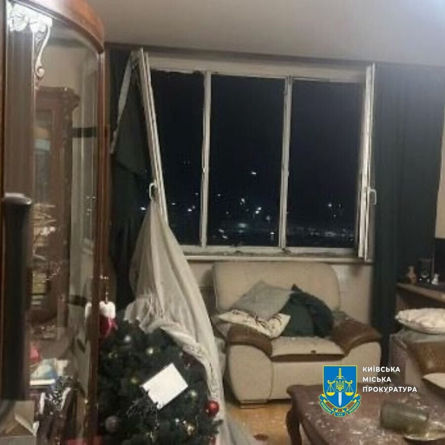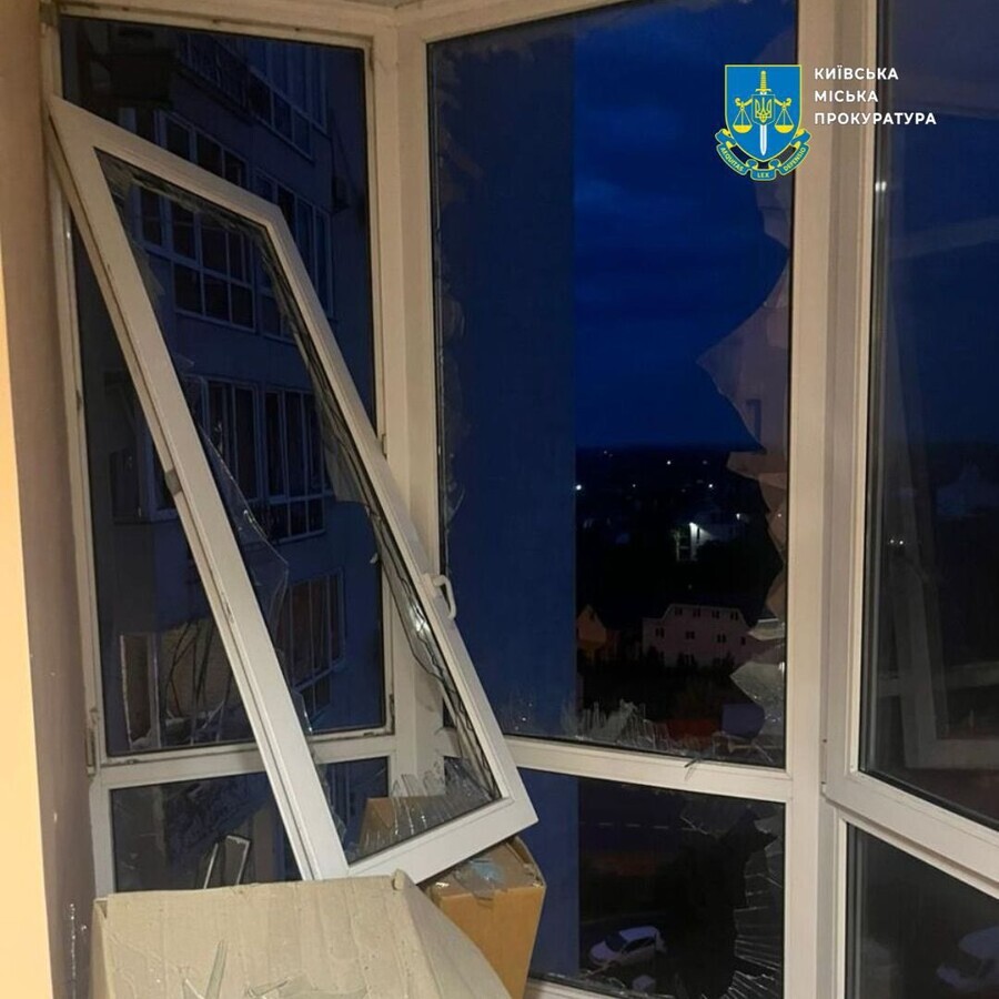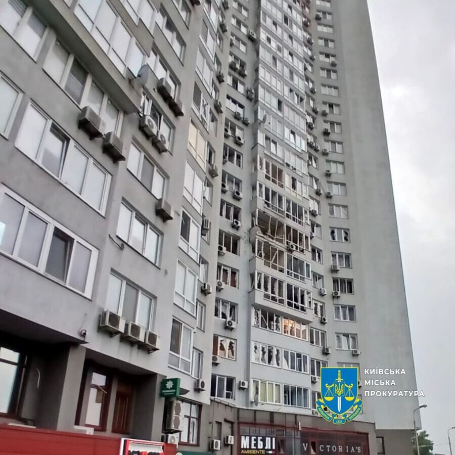 Найбільші пошкодження виявлено у 25-поверховому будинку в Дарницькому районі. Там вибиті вікна з шостого по 11 поверхи, а також пошкоджено автомобілі, припарковані у дворі. Правоохоронці продовжують фіксувати наслідки атаки.
