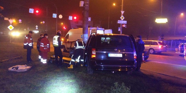 ДТП сталося на проїжджій частині дороги: під час руху автомобіль Lancia Voyager зіткнувся з електроопорою.
