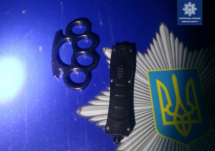 Відповідно до статті 34 ЗУ «Про Національну поліцію» охоронці порядку провели поверхневу перевірку, під час якої виявили у водія предмети, схожі на холодну зброю — кастет та ніж.