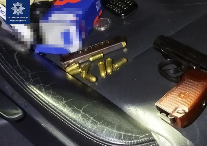 У транспортному засобі поліцейські виявили ще предмет, зовні схожий на вогнепальну зброю, та 16 набоїв до неї.