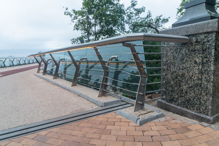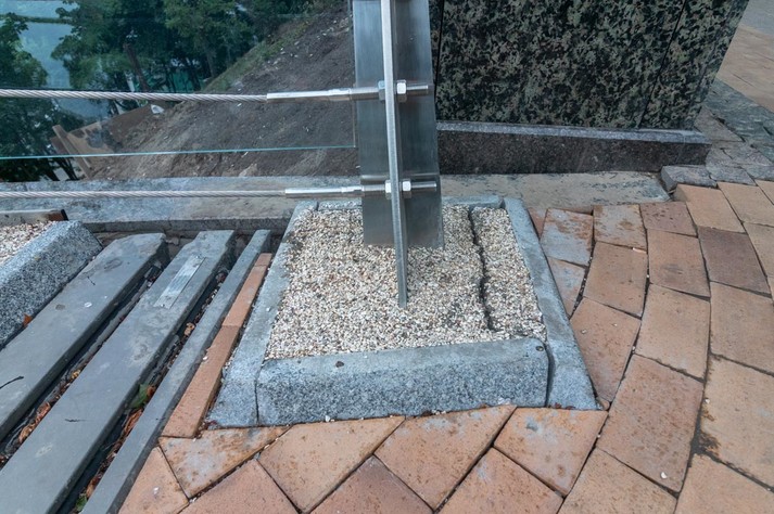 Тріщина розміром з палець з'явилося на крайній опорі перила з боку Володимирської гірки. Також троси, які стягують інше огородження, ослабли і провиснули. Крім цього, видно зазори і з іншого боку кріплення, які врізані в парапет.