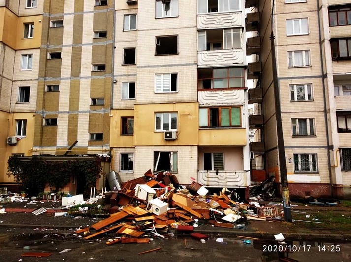 Новий скандал навколо будинку, де стався вибух: речі людей викинули з вікна (фото)