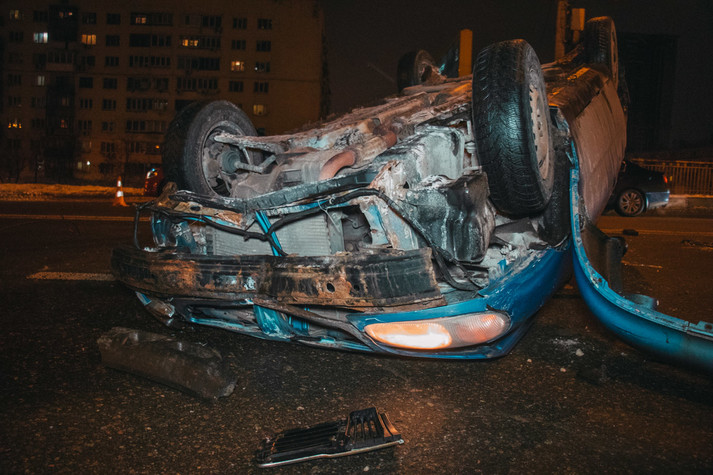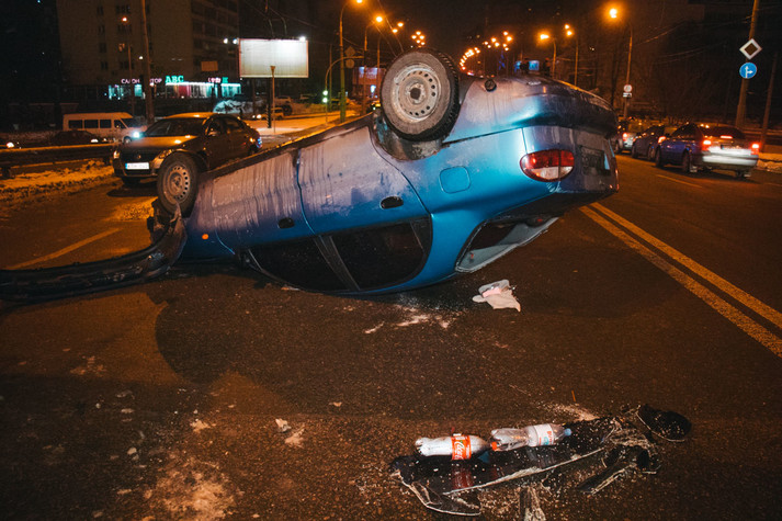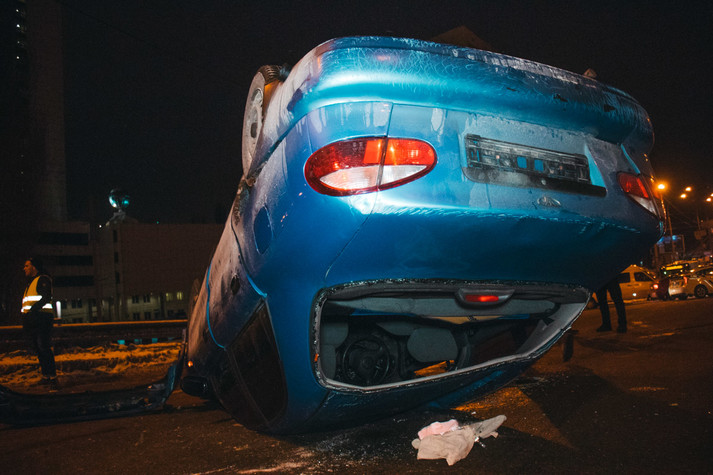 У п'ятницю, 11 січня, на Повітрофлотському мосту у Києві сталася ДТП: Daewoo Lanos зачепився за електричний кабель, що звисав на проїжджу частину, і перекинувся.