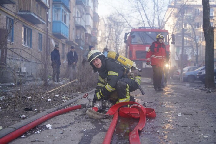 Внаслідок потрапляння залишків збитої ракети сталось загоряння у житловому будинку Подільського району Києва, повідомили в ДСНС.
