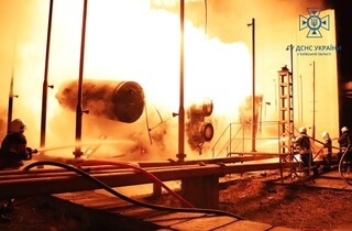 «На Київщині ліквідовано наслідки ворожих обстрілів по об’єктам інфраструктури, що здійснені сьогодні вночі дронами «Шахед». На ліквідацію пожежі було залучено вісім одиниць техніки та 48 чоловік особового складу», – йдеться у повідомленні.