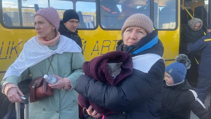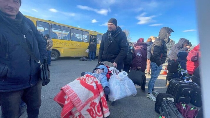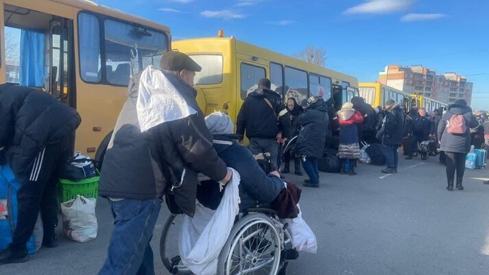 На Київщині автобуси та приватні авто з евакуйованими з Бучі прибувають до Білогородки, де людям надається перша медична та гуманітарна допомога.