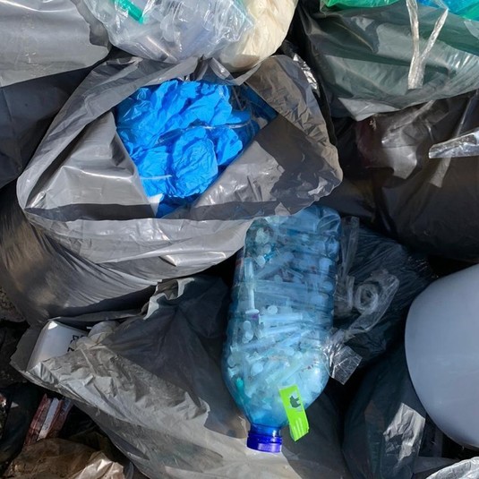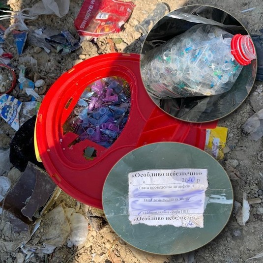 Серед медичних відходів - шприци, медичні маски, халати та інші відходи з медичних закладів Києва, у тому числі з інфекційних відділень.