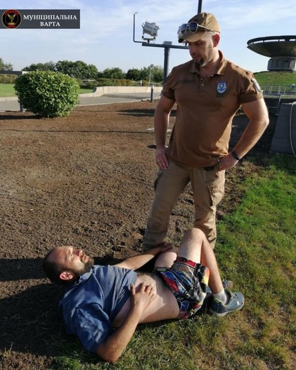 «Чоловік на фото перепив горілки та вирішив, що настав час для пригод. Нищив елементи освітлення у підніжжя прапора», - розповіли охоронці.