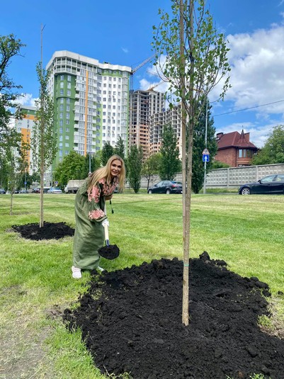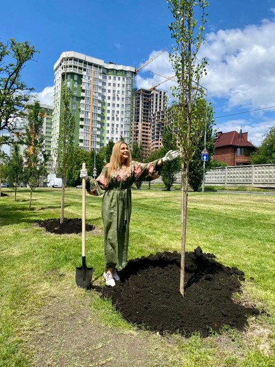 Українська зірка розповіла, що разом із телеканалом «Інтер» садила гіпоалергенні тополі на бульварі Вернадського.