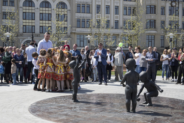 У Києві після реконструкції відкрили наземну пішохідну частину Поштової площі, де встановлена скульптурна композиція, що символізує засновників столиці. Про це повідомляє прес-служба столичного мера Віталія Кличка.