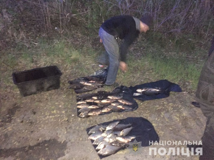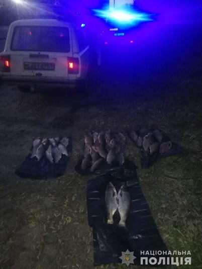 Під час огляду автомобіля ВАЗ 2104 працівники поліції виявили та вилучили у якості речових доказів риболовні сітки, надувний човен. Також вилучили рибу - карасі, лящі, товстолоб - загально вагою майже 30 кг.