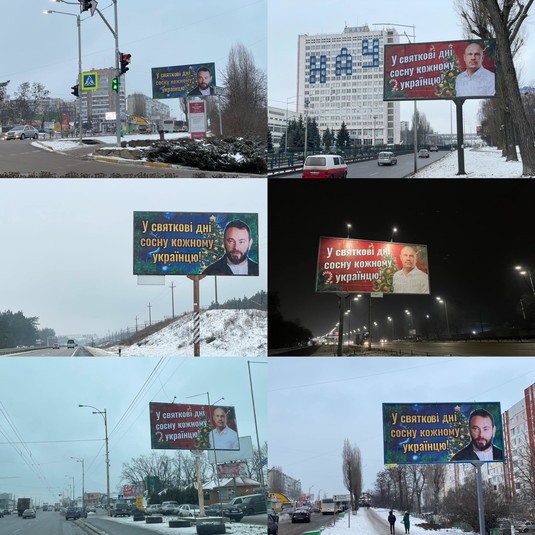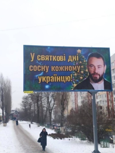 В Обухові Київської області та у столиці начебто з’явилися білборди із зображенням скандальних нардепів Олександра Дубінського та Іллі Киви з доволі неоднозначним слоганом – «У святкові дні сосну кожному українцю». Про це пишуть паблік «Підслухано в Обухові» та журналіст Сергій Іванов.