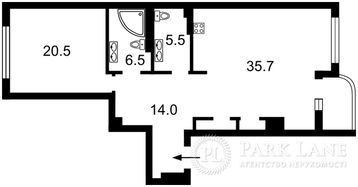 Загальна площа житла складає 62 кв.м., а кухні – 30 кв.м. Квартира оформлена у пастельних тонах. У спальні панорамні вікна виходять в тихий двір, також є підігрів підлоги, критий паркінг.