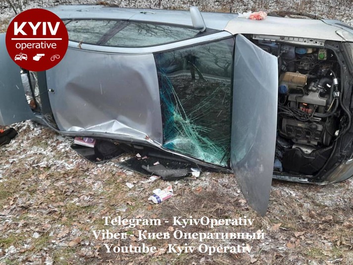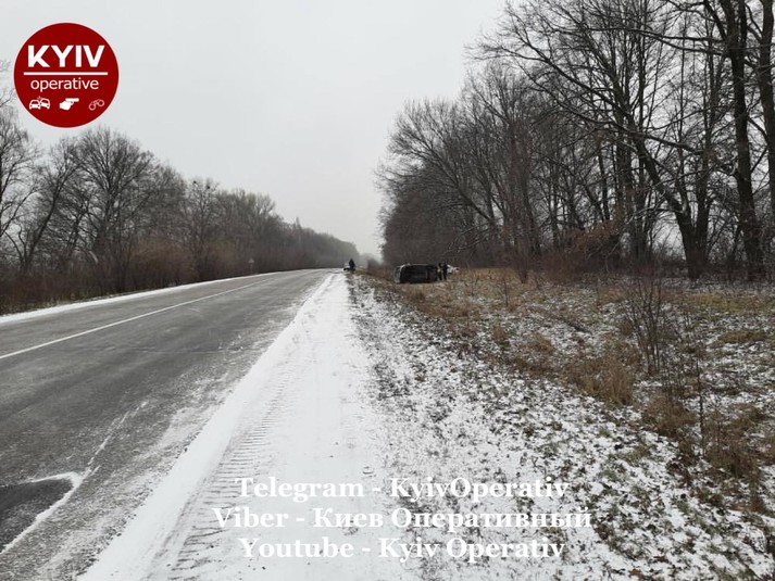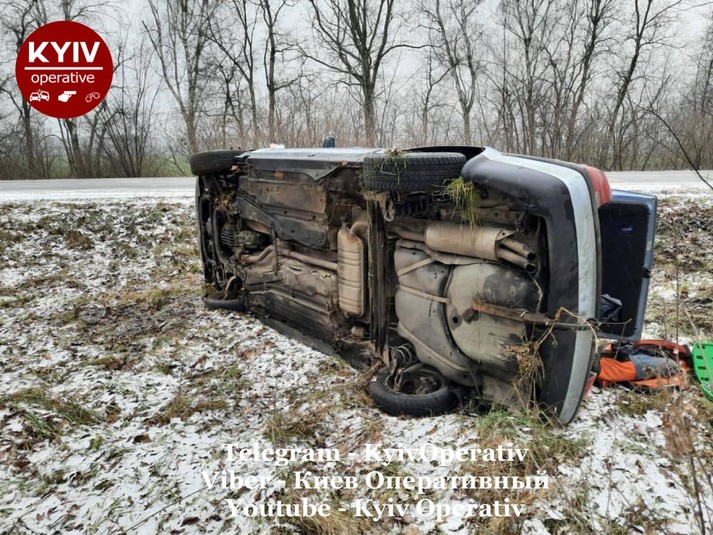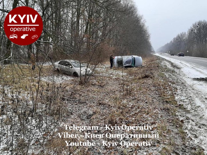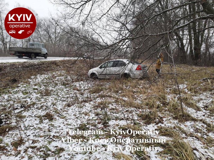 Ожеледиця спричинила ДТП на Київщині: дві автівки в кюветі (фото)