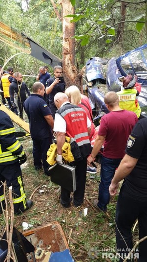 «Попередня інформація. Одна людина сама вилізла, одну ми дістали і передали представникам швидкої медичної допомоги... Їм пощастило, що, може, на дерева він упав і вони залишилися живими», - сказала вона.