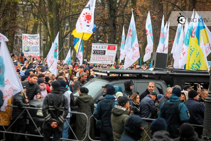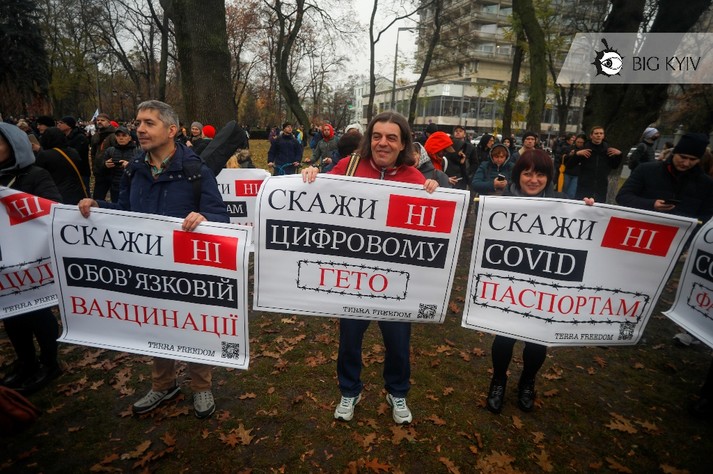 У середу, 3 листопада, в центрі Києва відбулася акція протесту противників вакцинації та карантинних обмежень через епідемію коронавірусу.