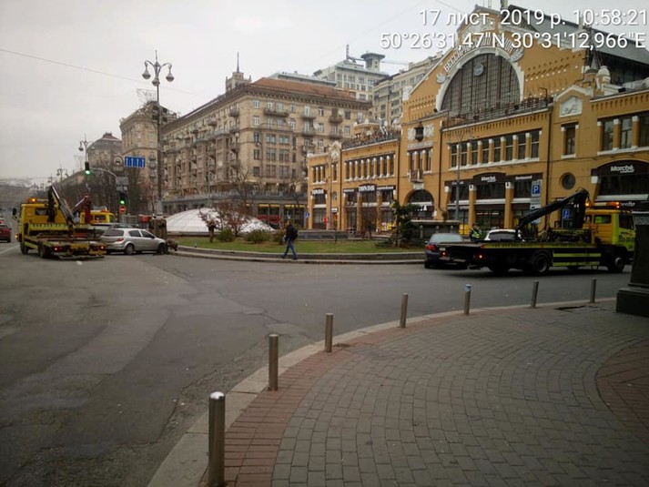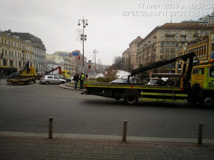 У неділю, 17 листопада, відбувалася евакуація транспортних засобів на розі вулиці Великої Васильківська та Бессарабської площі.
